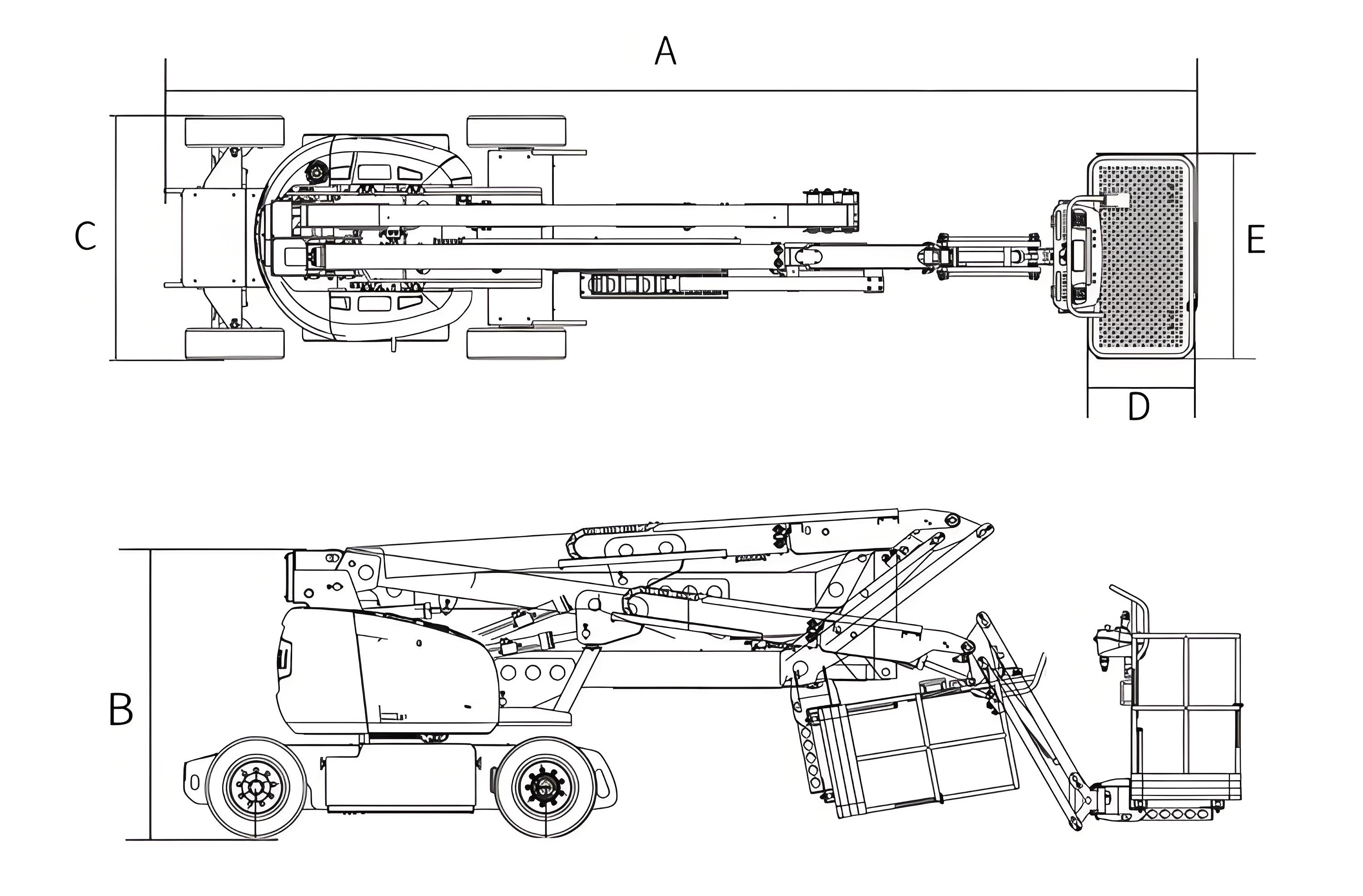 This Articulating Boom Lift has the smallest storage space in its class and convenient transportation performance, giving it an ultra-high carrying capacity.Σ-shaped boom and 5 m turning radius enable agile work in tight spaces. A 48 V/420 Ah battery, four-wheel AC drive with steering differential and 45° gradeability deliver long endurance and smooth, stable power. Zero-emission, low-noise operation makes it ideal for indoor and clean-site use.